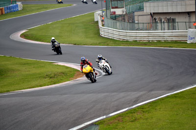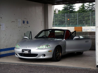 先月に引き続いて筑波サーキット コース2000のファミリー走行に参加してきました。 今回の走行も13時スタートのY1枠と14時スタートのY2枠。雨さえ降らなければいいのだけど……と思いながらサーキットに到着してみたら、思いがけない青空が雲間からのぞいています。 そして暑い! 暑い! 蒸し暑い! 走行準備をしているだけで汗がしたたり落ちて来ます。 これは暑さとの戦いになりそうです…… 走行準備の合間に、D5000で2輪の走行風景を撮影してみました。 1ヘアの外側からの撮影となりましたが、200mmレンズを使うと意外と寄ることが出来、楽しく撮影することが出来ました。 が、上手に撮るのは本当に難しい! シャッタースピードが速めに設定される「スポーツモード」だけで撮影していたからこそ、手ぶれを最低限に抑えて撮影することが出来たけど、バイクをきちんととらえて、格好いい構図で一瞬を切り取ることがなんて難しいことか。 撮影するためだけに筑波サーキットに行きたい。そう思ってしまいますね。 13時になり、いよいよ走行開始。 思わず先頭に並んでしまい、最初の数周他のクルマを抑えてしまったり(ゴメンナサイ_(._.)_)、4→2速に落とす2ヘアで4→3速に落として「回転数が合わないなぁ」と何周か悩んでしまったりと、予想外のトラブル(?)があったりしましたが、クリアラップがとれるようになってからは、充実した走行を楽しむことが出来ました。 1コーナーはイン側に早めに向きを変えすぎず、ある程度まっすぐ進んで旋回半径を大きくしクリップを奥にすることによって出口にまっすぐに進めるようになり、1ヘアに向かってスピードを稼ぐことが出来ました。 その1ヘアではまっすぐにブレーキングしつつミドル・イン・ミドルぐらいで走ることにより、続くダンロップへのアプローチが楽に。 ダンロップではアクセルオフで走る方法と、チョンブレで入る方法の2つをトライしてみましたが……さて、どっちがよいのでしょう? 2本目でベストタイムを記録した時はアクセルオフ→パーシャル→全開って感じでしたが…… 2ヘアも外側から4速→2速に落としつつ進入し、出口よりにクリップをとって走ったほうがいいですね。今回、2ヘアはかなり気持ちよく「決まった!」思いながら走ることが出来ました。 そして最終コーナー。4速のまま一瞬のブレーキで減速しつつ、出来るだけスピードを保って走ることに努めます。 ……と、気持ちよく走っていましたが、暑さによる消耗が意外と大きかったのか、20分を過ぎるころにはなんとなく集中力がかけているような気がして……NCにパスしてもらったのをきっかけに、時間を少し残して走行終了。 1本目のベストは1分18秒278でした。 続いて14時から本日の2本目、走行開始です。 1本目が終わってから水分補給を積極的に行っていたけど、体力を結構消耗しているのか、いまいち集中力を感じられない状態。 ……よし、最初の3~4周が勝負だ。クリアになったらタイム狙いで一気に走ろう。 そう決めてコースイン。インラップでブレーキタッチを確認してから早速アタック開始! 1周……2周……いい感じに走っています。エンジン回転数をドロップさせすぎることなくコーナリングし、早めに加速体制に移行して……速いクルマはロスが少なそうなところでパスしてもらい、追いかけつつポイントを参考にさせてもらい……っと、前に集中しすぎてレブリミットに当ててしまいました。 ここでなんとなく集中力を欠いてしまい、走行時間の後半はいまいち精彩に欠く走りとなってしまいました。 雨も降り出し、集中も出来なくなっているし……2本目も早めに走行終了。 本日のベスト、1分18秒075は実に2本目スタート後3周目に記録していました。 集中力ってのは、大切ですね。 走行終了を待っていたかのように雨が本降りになってきたので、さっさと荷物を積み込み、空いているピットに移動です。 結果としては前回の走行から約2秒、6年前に記録していたタイムからも0.009秒タイムアップとなりましたが、自分自身の体力の無さを痛感した走行となりました。 もっと体力と持久力を付けないと、2本分=1時間の走行をフルには楽しめませんね…… さて、次回の走行はいつになるのでしょう? もしかしたら涼しくなってから……かなぁ。 本日の仕様 ○ エンジン関連 マフラー: MAZDA SPEED スポーツサウンドマフラー 中間パイプ: JoyFast 2寸菅プラス エアフィルター: Auto Exe ディスポーザブルフィルター ラジエタークーリングパネル: LAILE Beatrush ラジエタークーリングパネル アンダーパネル: LAILE Beatrush アンダーパネル エンジンマウント: MAZDA SPEED 強化エンジンマウント ボンネットインシュレーター: MAZDA マツダスピード架装車用 ○ 足回り スプリング: Auto Exe ローダウンスプリング ダンパー: Auto Exe スポーツダンパー スタビライザー: Auto Exe スポーツスタビライザー ホイール: RAYS VOLK RACING TE37 15×7JJ +35 タイヤ: GOODYEAR EAGLE REVSPEC RS-02 195/50R15 ホイールナット: RCOJ アルミナット+
