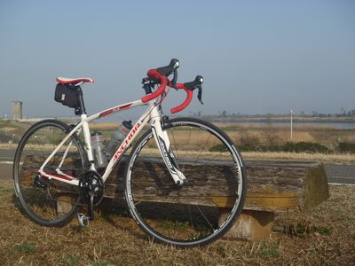 まずは21日(土)、春分の日。 日の出が早くなって来たのでそれに合わせて早起きして、6時前に自宅を出発。 前回の香取神宮往復で左膝を痛めてしまい、その対策としてインソールの裏側にバーテープを貼り付けてカント調整をしてみましたが、どうでしょうか? いきなり長距離を走るとトラブルが発生した時の対応が大変だから、まずは野田市一周コースで様子を見ます。 いつもどおり、利根運河から一般道を経由して利根川の土手へ。 リア3速主体で走ってみた感じでは、左膝に違和感は感じられません。 土手に入ったらちょっと頑張ってリア4速を主体に、グイグイとペダルを回していきます。 拇指球の下にバーテープを貼って、全体的に足の平が外側に傾くように調整してみたのですが……なんとなく良さそうな感じです。 関宿城公園まで一気に走って一休み。足が斜めになっているわけですが、そんなに違和感を感じることはありません。 さて、関宿橋を渡って埼玉県川に入り、江戸川の土手を今度は南下していきます。 天気予報によると北西の風が吹くことになっているので、ここからは追い風で楽が出来るはず。前半がんばって走ったので、ここからは追い風を利用して走ります。 ……という予定だったのですが、どうもペースがあがりません。前半をがんばり過ぎてしまったのか、思うように脚が動かなくなってしまいました。 気が付くと、わずかな向かい風……追い風の予報だったのに! 南風に変わるのは昼ごろからのはずだったのに! と思っても仕方がありません。向かい風のなか、もがくように前に進み、進み、何とか自宅に到着。 心配していた膝の痛みが再発することなく、約60キロを走り切ることが出来ました。 前回痛みが出てきたのは60キロを過ぎたあたりからだったので、まだ安心は出来ませんが……ひとまずカント調整はこのままで様子を見ることにしましょう。 というわけで、 走行距離:58.70キロ 走行時間:2時間15分 平均速度:26.0キロ ケイデンス:83回転 という結果になりました。 続いて22日(日)。 前日に両親が父方の実家に行くことを聞き、急遽片道だけですが父方の実家のある横芝光町まで走ってみることにしました。 道の駅さらわまでは土手沿いを走り、そこから県道16号線を南下し、八日市場駅のそばから九十九里ビーチラインを南西に下って目的地を目指す、105キロ程度の走行距離を予定するコースです。 前日に引き続き、6時前に自宅を出発。こうやってロングライドに出るのがわかっていたら、もうちょっとセーブして走っておくべきだったなぁ……と軽い後悔をしつつ、利根運河の東端まで走ってから利根川の土手を北東に走っていきます。 途中で舗装が途切れるので、あけぼの山農業公園付近から中央学院大学近くを通り、我孫子カントリークラブ付近に抜け、再び利根川の土手に戻ります。 追い風に背中を押されて、快調に土手を走り続けて最初の休憩場所、長門川公園近くに到着です。 ここまで自宅から約38キロ。関宿城までの片道+αといった距離ですね。風向きと時間によっては、野田市一周ではなくここまでの往復を走ってみてもいいかも。市街地に適度なアップダウンがあるし、折り返し地点ではトイレ休憩ができるし。 両親に連絡を入れて走行再開。次の目的地は道の駅さわら。延々と利根川の土手を走っていきます。 途中で舗装が狭くなったり広くなったり、橋の近くで一般道を走ったりと多少の変化はあっても、基本的には土手沿いの一本道を真っ直ぐに走り続けるイメージです。……ちょっと走るのに飽きてしまいますね(^_^;) あれぇ、道の駅までこんなに遠かったかなぁ……もうすぐだと思うのだけど……としばらく走り続けて、やっと道の駅さわらに到着。ここまで約66キロ。往復すると132キロとなかなかの距離になってしまいます。気軽に走れる距離でないけれど、達成感はありますね。野田市一周を片道で走っているわけですから。 ここから先は走ったことがない県道16号線を南下していくことになります。両親に連絡を入れつつ、補給食を食べてゆっくりと休んで走行再開です。 県道16号線は片側1車線のそんなに広くない道路ですが、クルマの通行が少ないのでそこそこ快適に走ることが出来ます。 住宅街、田園地帯、丘陵地帯と変化に飛んだ地形を走ることが出来るので飽きませんね。そして多くはないけれどコンビニもあるので、補給の心配もありません。 海に向かって下っていくのだし、風も追い風になっているからそう大変ではないだろう……と思っていたのですが、途中で丘越えが3回。これがなかなか大変でした。標高で言えば40~50メートル程度なので大したことはない高さなのですが、普段が平地ばかり走っているので、この程度の丘でもかなり大変です。 フロントをインナーに落として、リアを3~4速を使って丘を登り、下りはフロントをアウター、リアを4速にして勢い良く走っていきます。丘を登った分だけ下りで楽が出来るはずなのです
