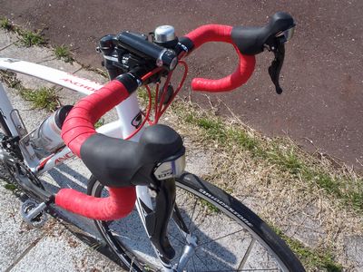 木曜日のことを書く前に、まずは13日(月)のこと。 バーテープの汚れが気になっていました。 各種ワイヤー交換と一緒に巻き直したのが4ヶ月前。赤いバーテープだからある程度汚れが目立つだろうとは思っていましたが、それでも結構気になるものです。 ローラー台に乗るときに、素手でハンドルバーを握ることがあるから、それで汚れが多く付くようになってしまっているのかな? まぁ、そんなわけで、思い立ったら吉日ということで巻き直しをすることにしました。 用意したバーテープはOGKカブトのBT-01の赤。前回と全く同じテープです。 さくっとバーテープを外し、ワイヤーを固定していたビニールテープも剥がします。この時にデュアルコントロールレバーの位置も微調整しました。ハンドル下端のフラット部からの延長線上にレバーの下端が来るように、今までと比べて少し上になるように取り付けです。 満足出来るまでレバーの位置調整をしたら、テープを巻いていきます。今回は隠しテープを使うオーソドックスな方法で巻いてみました。 はい、巻けました。八の字巻きに比べて簡単な巻き方ですが、隠しテープと連携してレバー取付部を上手く隠すのがポイントですね。それと、レバー取付部のボリュームは少なくなります。この辺りは好みの問題なので、使っていく上でどちらがいいか考えていくことにしましょう。 というわけで、16日(木)。 長男が小学校に出かけてから準備をして、8時前に自宅を出発。 いつも通り利根運河から一般道を経由して利根川の土手に出て北上し、関宿城公園を目指します。 時間的にはもう少し遠出するだけの余裕があるのですが、あんまり焦って過ごしてくないので、あえて野田市一周コースを走ることにしてみました。 明るいところで見る赤いバーテープは鮮やかな発色で気持ちがいいですね。やる気にさせてくれます。 デュアルコントロールレバーは今までと比べて、結構上向きになったような感じがしますが、人差し指と中指でブレーキレバーの上側「105」のロゴのあたり、薬指と小指でブラケットを握るようにすると、なかなか丁度良い角度になっているように感じられます。 ぐっと力を入れて加速する時に、ハンドルをぐいっと引きつけて力を入れられる……そんな幹事です。 今回もまた4速を主体にカシカシとペダルを踏み、引き上げ、回して、関宿城公園に到着。 写真を撮りつつ少しだけ休憩したら、走行再開。今度は江戸川の千葉県側を走って利根運河を目指します。 天気予報では南西の風2メートルとなっていましたが、風はほとんど感じられず。 しかし、40キロを過ぎたぐらいから脚に疲れが出始めて、気を緩めると速度が落ちてしまうようになってしまいました。 こういう時は気合と根性! 脚を踏み込むのではなく、股関節と腿から脚を引き上げてペダルを回していく! そうすると意外と楽にペースを戻すことが出来ます。 ペースの維持に四苦八苦しながら、それでも一時期は平均速度28キロ台を記録しつつ、無事に自宅に到着。 走行距離:57.13キロ 走行時間:2時間3分 平均速度:27.8キロ ケイデンス:85回転 という結果になりました。 前回と比べて平均速度、ケイデンスともに向上していますね。 この調子で次回もまたがんばりましょう。 PR |