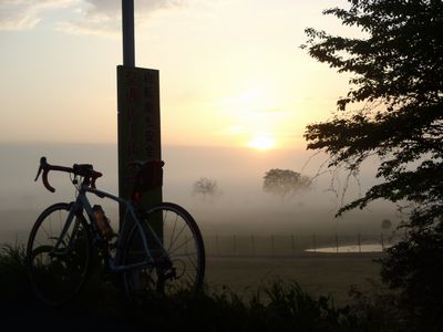 役に立つことではなく、ただ自分の走った記録を、あとから見返せるようにと書いているものなので読みにくかったり、内容が薄っぺらかったりしますが(^^ゞ そこはご容赦を。 それはともかく、4月も後半に入り春の気配がより一層と感じられ、朝晩の通勤も軽装になってきたこの週末も、元気にロードバイクで遊んできました。 土曜日がお仕事だったので、日曜日と振り替え休日となった月曜日の2日間、RFA5 EPSEくんを外に連れ出すことが出来ました。 まずは19日(日)。 4時半に起きてバナナ一本を朝食代わりに食べて5時過ぎに自宅を出発。この時間でももうヘッドライトが要らないぐらい明るくなっています。それでも、対向車に自分の存在を知らせるために点滅モードでライトを点けておきます。 暖かくなりそうな天気予報だったのでハーフ丈レーサーパンツ、半袖ジャージ、指切りグローブという軽装で出発したのですが、空気が冷たすぎて寒いぐらい! 30分も走っていれば身体が暖まってきてくれるのですが、それまでが辛かった。アームウォーマーぐらいは身に付けてくればよかった。そんなに荷物にもならないし。 そんな寒い思いをしながらも、利根運河から一般道経由の利根川の土手といういつものコース。 今年は霧が出ていることが多いような気もします。この日も霧が出ていました。ウェアに付いた水滴が凍るほど寒くもなく、五里霧中というほど濃くもありませんでしたが、霧の中というのは走りにくいものです。メガネに水滴がついて見えにくくなってしまうし。 芽吹橋で今日は茨城県側に渡り、一言主神社を目指します。利根川から離れると霧もなく、また朝早い時間ということもあってクルマも少なく、快適に走って無事に到着。 どうやら骨董市が開催されるようで、多くの人がすでに準備を始めていました。まだ6時なんですけど、こんな時間からスタートですか…… 一言主様に交通安全の助けをお願いして、トイレ休憩を済ませて走行再開。 坂東市内の国道354号線を北西に走って関宿城公園を目指していきます。 354号線は片側1車線の道路で、あまり起伏がなく、また路肩が極端に狭いといった危険な場所もないので、朝早い時間帯であれば、ロードバイクで快適に走れます。 時間が遅くなると、クルマが増えてトラックも増え、あまり走りたくなくなってしまいますが……(以前に一度、まったくこちらに気が付いていないかのようなトラックによって、ガードレールとの間に挟まれそうになったし……)…… 関宿城公園到着です。こちらも早い時間にもかかわらずクルマが多く出ていました。陽気もいいし、ちょっと早起きして散策するにもいいのかもしれませんね。 さて、関宿城公園を出発したら江戸川の千葉県側の土手を南下していきます。宝珠花橋から木間ヶ瀬に抜けて裏の県道を走り、実家に寄り道して朝食をご馳走になり、その後利根川の土手から利根運河を経由して自宅に帰還。久しぶりの一言主神社コースを無事に、そして快適に楽しむことが出来ました。 走行距離:73.17キロ 走行時間:2時間50分 平均速度:25.8キロ ケイデンス:80回転 という結果になりました。 続いて20日(月)。 この日は雨、そして強烈な南風の予報が出ていたので、大人しく野田市一周コースを走ることにして、家人が家を出た8時過ぎに自宅を出発。 利根運河から利根川といういつものコースを走り、まずは土手を北に向かって走ります。 ここで南風による追い風のサポートを得ていいペースで走って行く予定……だったのですが、走り始めの南西の風がいつの間にか止んでしまい、ほぼ無風のコンディションの中を走ることに。 予報が外れて意外と穏やかな天気になってくれたのかな? そうそう。前日夜に中央寄りに調整したクリートのセッティングがばっちり合い、ペダルを踏み込む力がよりダイレクトにクランクに伝わるような感じがします。やっぱりシューズは出来るだけ内側に寄せてペダルと結合させるようにしたほうがいいようですね。ただ、あまり内側に寄せすぎると膝を痛くしてしまうので、いい加減のところを見つけなければいけませんが。 追い風のサポートはなかったけど、無事に関宿城公園に到着。平均27キロを超えるペースで走ってきたわりには、脚もまだ残っている感触で、このままのコンディションだったらなかなか良い記録が残りそうです。 水分補給と休憩をとって、走行再開。今回は江戸川の埼玉県側にわたって南下していきます。 宝珠花橋を過ぎて国道16号線が近づいてきたところで、ポツリポツリと雨粒が。 ああ、降られてしまったか。 でも、途中で止めるわけにもいかず、このまま自宅まで帰りつかなければなりません。 雨は強くなったり弱まったりを繰り返しますが、止む気配はありません。そのうちに、今度は南風まで吹き始めました。それも、なかなかに強力なのが(ToT) GPSによる走行ログをみると一発でわかりますね。45キロ付近からガクンとペースが落ちています。風