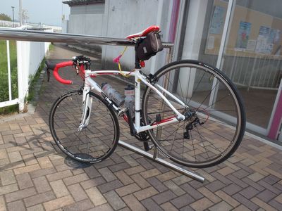 まずは4月24日(金)。勤務の都合で公休となったこの日。天気予報によると北風のち南風。 風を利用するのであれば南に向かって出発して北に向かって帰るのがお利口な選択。 しかし……南行きのコースがいまいちパッときませんでした……よし、風を気にし過ぎるのはやめて、走りたいところに走って行こう。向かい風上等。風は最高のトレーニングパートナーです。 というわけで。7時40分頃に自宅を出発。いつものように利根運河から一般道を経由して利根川の土手へ。またしても靄が出ていますが、この日はそれほど濃くなることもなく、すんなりと芽吹橋へ。橋も通り越して順調に北へ、北へ。 しかし……サイクリングロードに黒い羽根虫が多すぎる! 虫がたまっているところに突っ込んでしまったり、顔に向かってきたり、気が付くとレーサーパンツに止まっていたり、サイコンに止まって無賃乗車を決め込む奴がいたり……なかなかにつらい道のりとなってしまいました(ToT) まぁ、それはそれとして、今回は長距離を走るつもりなので、3速を主体にペースを一定に保つことを心がけて淡々と走っていきます。 まずは境大橋を渡った先にある常夜燈のところで一休み。 ここで先日調整したハンドルの角度を再度調整。ブラケットが下を向きすぎて腕と腰に負担がかかってしまって気持よく走れない感触があったので、元の角度に戻しました。こんな時に携帯工具を持っていると便利ですね。もっとも、小さいだけにトルクをきちんとかけておかないと、走っている間に動いてしまいそうな怖さはありますが。 程よく休憩したら走行再開。利根川の茨城県側を北上し、さらに渡良瀬川沿いを北上。次の目的地渡良瀬遊水地を目指します。 調整したハンドルはばっちり感覚にあっていて、自然にブラケットを握って巡航時には軽く手のひらで押すような感覚、そして踏み込むときにはぐっと薬指と小指で引き付ける感覚がしっくりと伝わってきます。機材を使うスポーツだけに、クルマと同様、セッティングの良し悪しで気持ちよさがだいぶ変わるものですね。 渡良瀬遊水地近くの道の駅、きたかわべに到着です。 併設されている売店で「ばくだんドーナツ」5個入りを購入。今日の補給食を確保です。 1個を頬張りながら水分も補給して一休み。今日はここで引き返さず、更に北に向かいます。 県道11号線を北上していきます。クルマの交通量がそこそこあり、トラックも走っているのであまり車道を走りたくないところですが、幸いにも歩道を自転車も走行できるので、走れるところは出来る限り歩道を(もちろん歩行者に注意しながら)走り「ぶどう団地入口」交差点を左折。 両毛線の線路を跨線橋で越し、しばらく走った右側に見えてきたのが太平山神社に向かう林道の入口。 そうです。今日はここから太平山神社までのヒルクライムに挑戦です! こんな感じで南側から太平山神社に向かって山を登っていくルートになります。 林道の入口で腕時計をストップウオッチを作動させて、いざスタート! まずはフロントアウター、リア3速の平地モードから走り出します。緩やかな斜面が続いている間はこのままいけるかと思っていましたが、やっぱり斜面は辛い! フロントをインナーにかけかえて、リアを4速へ。クルクルとペダルを回しながら、オーバーペースにならないように気を付けつつ、林道を登っていきます。 前回、太平山神社を訪れた時は北東側から九十九折の激坂を登っていきましたが、今回のルートはゆるやかな斜面とRのゆるいコーナー主体で、場所によっては一旦下るところもあり、足をつくこと無く走り続けることが出来ます。 ……なんでも、前回挑戦したコースは一番の難関コースだったようで……そりゃ最初から激坂&ヘアピンコーナーだったもの…… ハァハァ、ゼェゼェと息を切らしながら、それでも足をつくこと無く登り続け、道は前回走ったヘアピンが連続する激坂区間へ。あと数百メートル登れば、平地になっている駐車場。あとすこし……というところで、どうしてもペダルを回せなくなって足付き一回目。 息を整えながら自転車を押し、多少斜面がゆるやかになったところからもう一度ペダルを漕ぎ、なんとか謙信平駐車場に到着! ゆるゆると通り過ぎ、一度下って山門の前を通りすぎて、左に曲がって神社に向かう最後の登り区間へ。 ギアを最大限軽くしてペダルを回していくも……足付き二回目。激坂&ヘアピンカーブで登りきれなくなってしまいました。 が、まだまだ諦めません。また息を整えながら自転車を押し、斜面がゆるやかになったら自転車に乗り、ペダルを回し、回し、回して…… 太平山神社下の駐車場に到着! 前回は自転車を押している時間のほうが長いくらいだったけど、今回は二回足を付いただけでなんとか走り切ることが出来ました! 記録は26分18秒! まったく大した記録ではないけど、とにかく走りきり、記録を残すことは出来ました。 そして再び眺めることが出来た